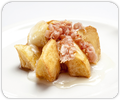 [8] Patates ecològiques amb salsa de cabrales i encenalls de bacó