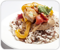 [25] Mar i Cel: Barqueta de bacallà amb pebrot, salsa de codony i espurnes de cel