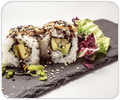 [31] Foagura: Uramaki d'alvocat, espàrrecs de marge i foie amb reducció de Mòdena i escates